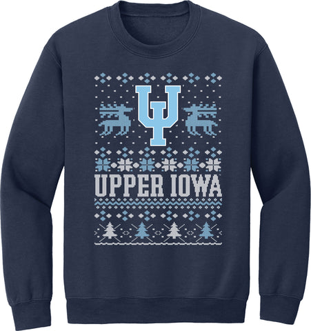Sweater-look design screen printed on front of crewneck sweatshirt.